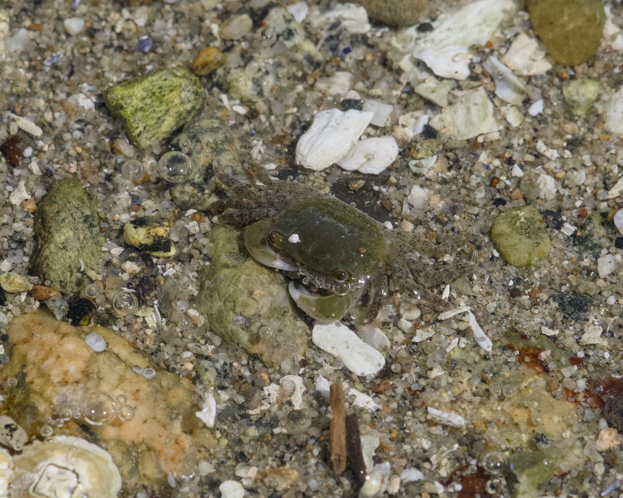 Belcarra didn’t give us many bird photo ops, but look at what we found in the shallows of Bedwell Bay! A whole bunch of teeny tiny crabs! All different colours, but all blending in pretty well with their varied surroundings. They were hard to shoot not just because of the wibbly water, but they were so small that the extremely gentle waves could still push them around. How they get anything done, I can’t imagine.