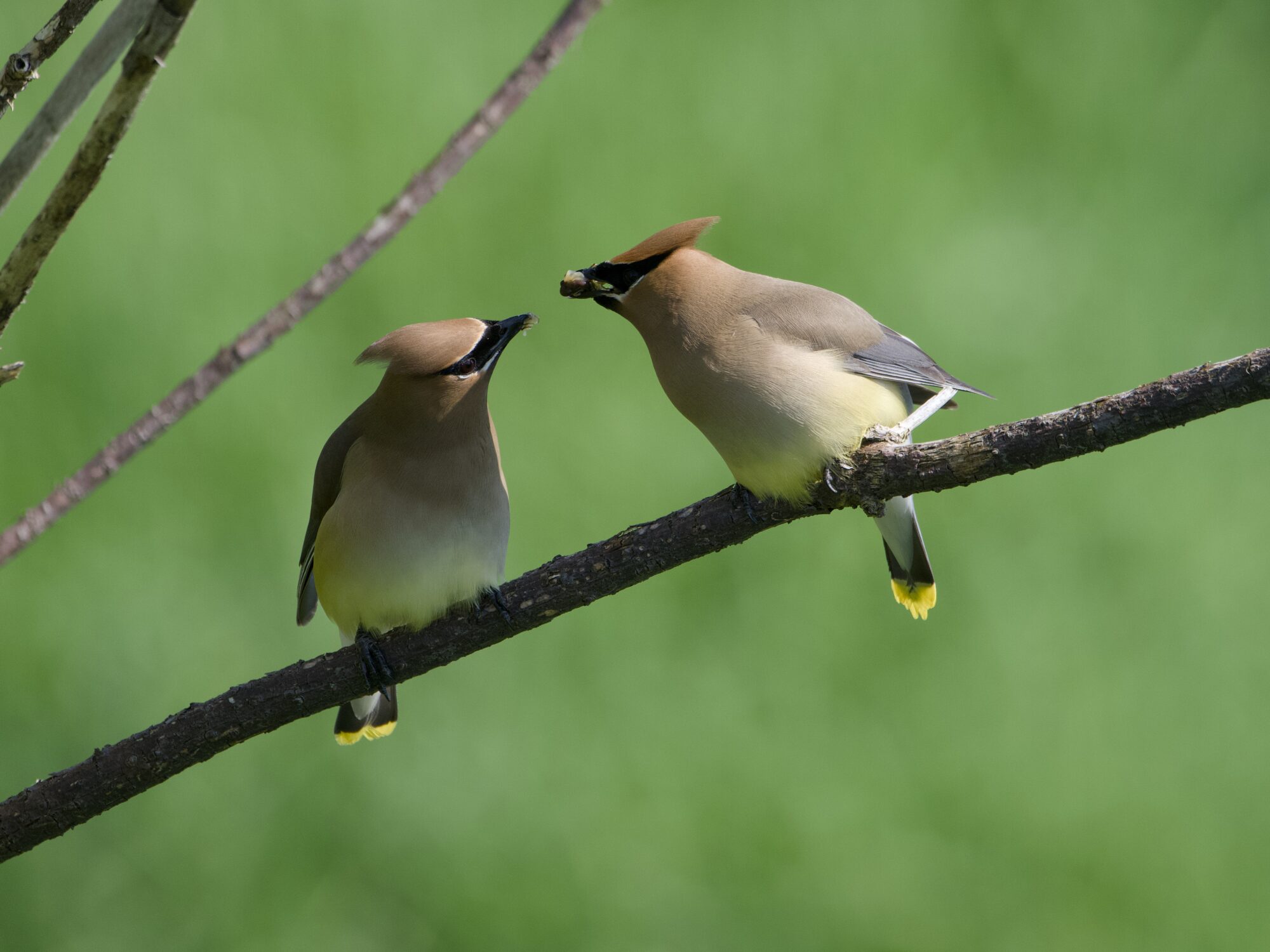 But the real stars were this Cedar Waxwing couple, doing that thing where they swap a bit of food back and forth as a bonding exercise. I’d caught a quick glimpse of it a few years ago, but this time I was able to get great photos!