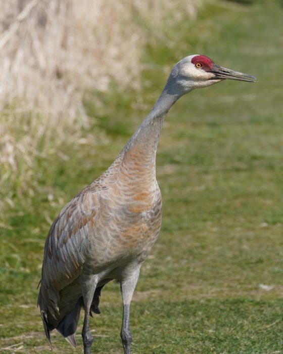 This crane—one of three strolling together on the trail—kept calling out with their weird ek-ek-ek-ek call. From what volunteers and the official Reifel Twitter account are saying I think this may have been Evan, the colt born here summer of 2021, who briefly went off on its own on its first spring, but then rejoined its parents when they lost their latest baby to a raptor in 2022. It just seems to be acting like a moody teenager, keeping its distance somewhat but not yet abandoning its caregivers entirely.