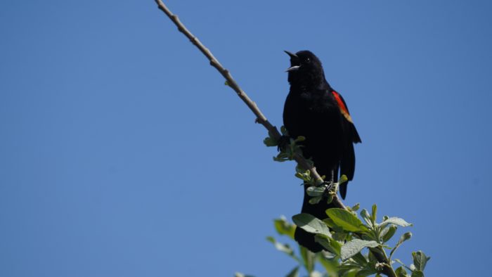 Red-winged blackbird singing